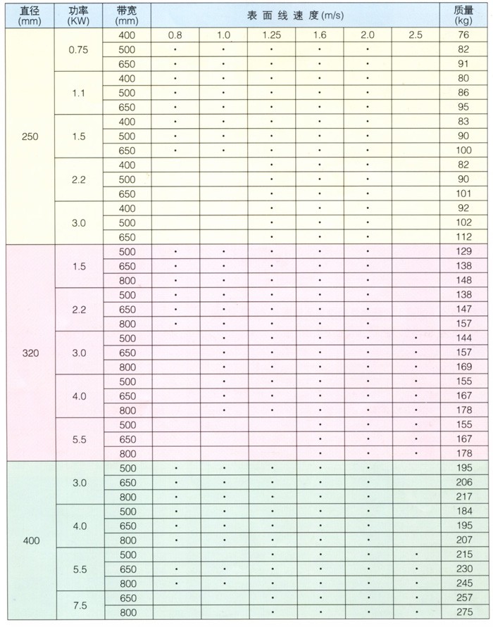 DY1、JYD型油冷式電動滾筒系列參數(shù)表