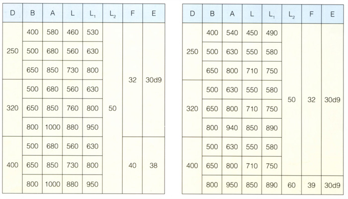 DY1型油冷式電動滾筒外形尺寸表                       JYD型油冷式電動滾筒外形尺寸表