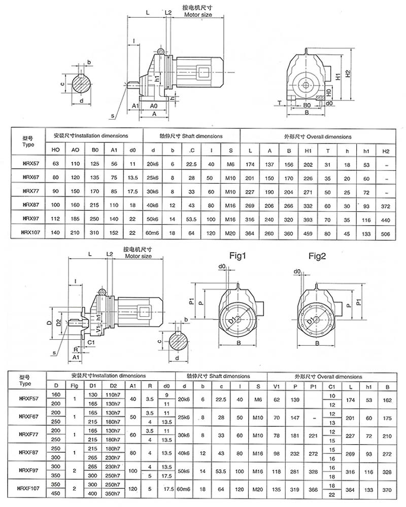 | R…F:底腳法蘭安裝 | RM: 法蘭安裝帶加長軸承箱 |